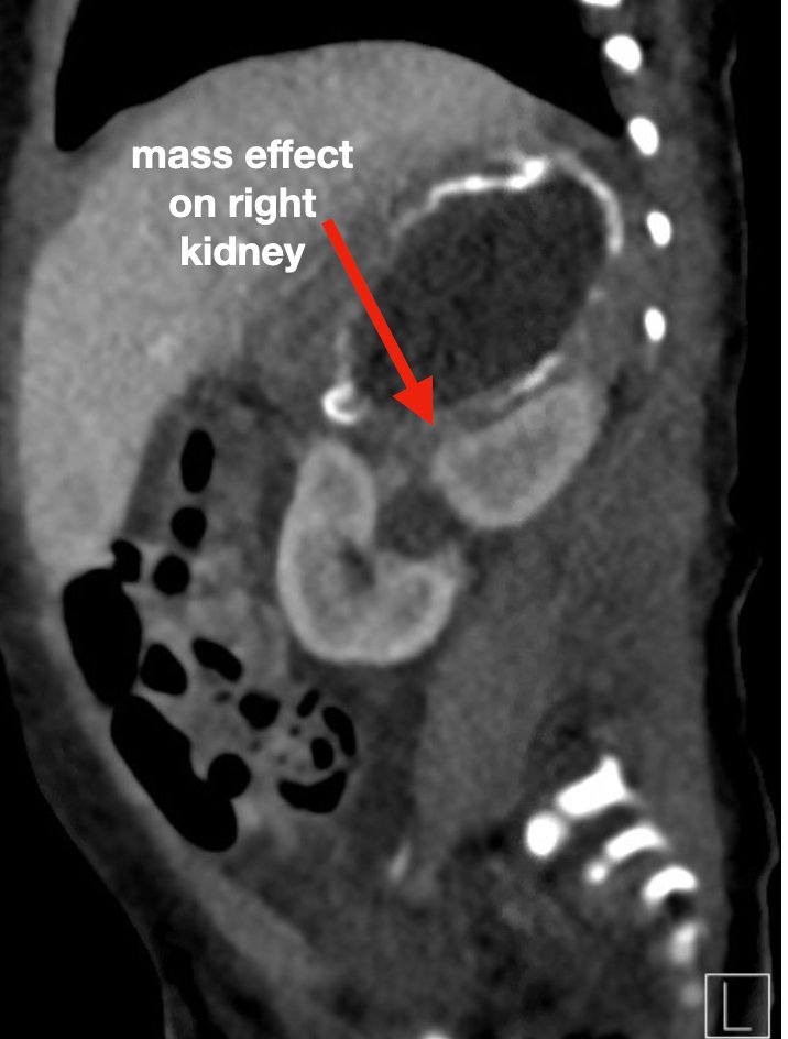 Neonatal Adrenal Hemorrhage, Abscess and Pseudohypoaldosteronism. CT Sagittal. Annotated. JETem 2021By JETem / July 12, 2023