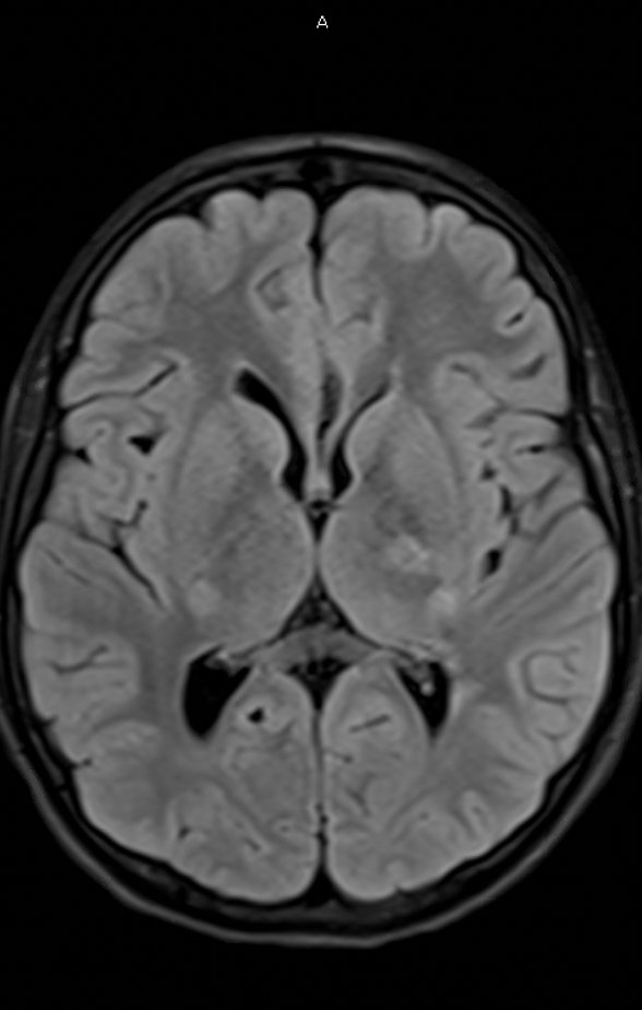 Pediatric Autoimmune Encephalitis. T2 FLAIR signal abnormality in basal ganglia (day 2). JETem 2022By JETem / July 12, 2023