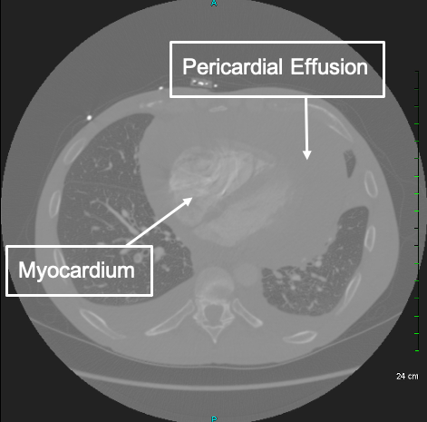Cardiac Tamponade. CT. Annotated. JETem 2021
