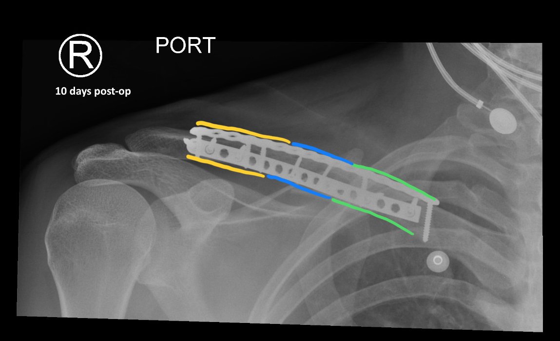 R Clavicular Fracture 10 days PostOp. XR. Annotated. JETem 2020