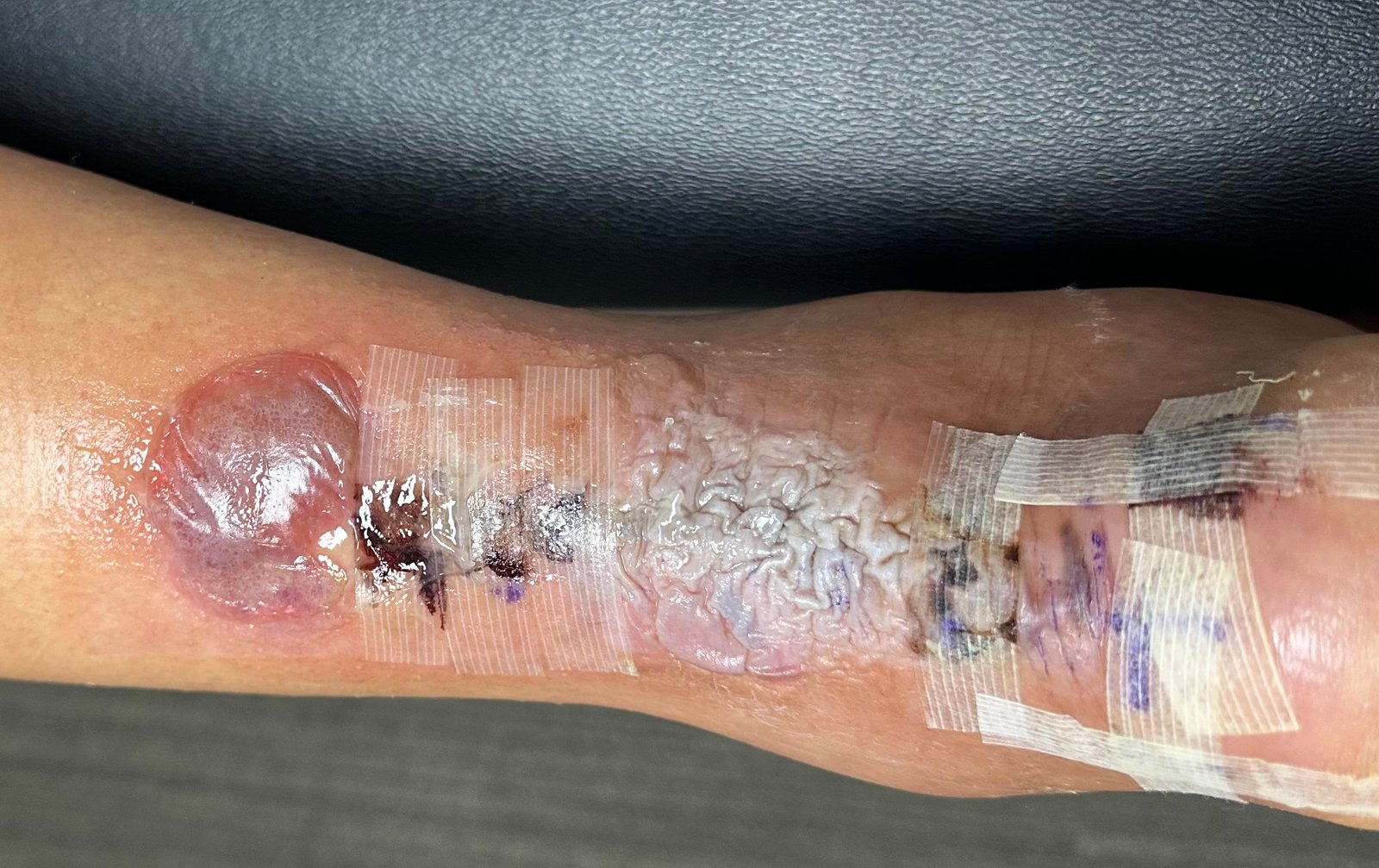 Dermatologic Reaction to Wound Closure Strips and Liquid Adhesive. Photo 2 Unannotated. JETem 2025By JETem / November 1, 2025 Dermatologic Reaction to Wound Closure Strips and Liquid Adhesive. Photo 2 Unannotated. JETem 2025