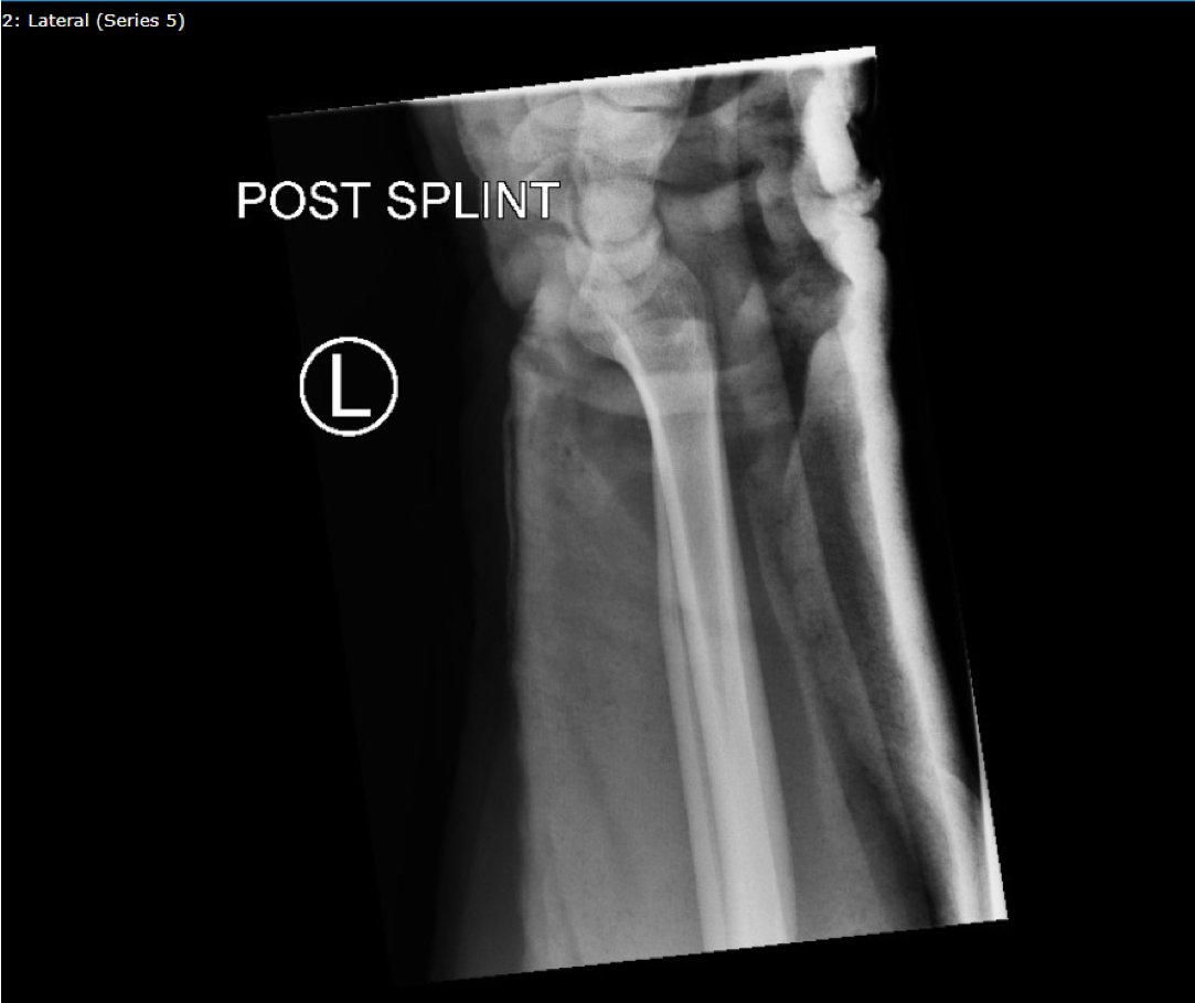 DRUJ Wrist Xray, Lateral, Post Reduction. Unannotated. JETem 2020
