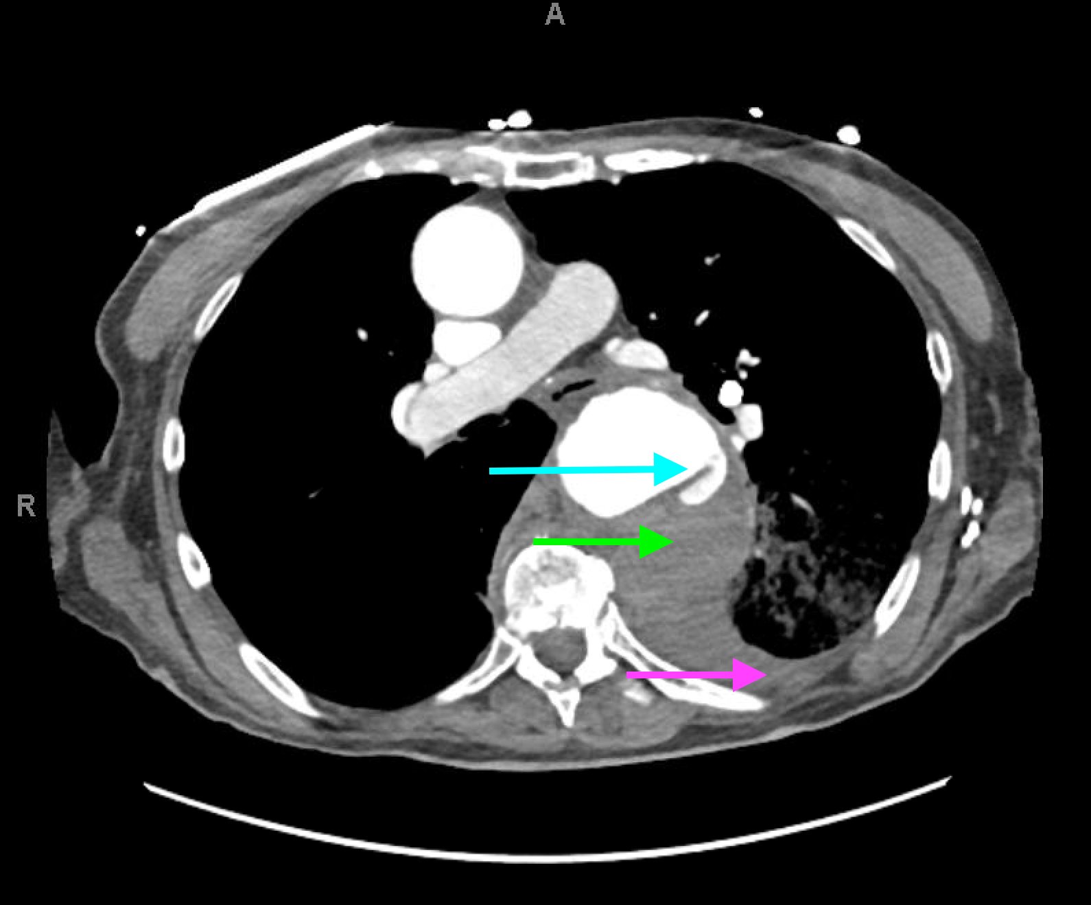 An Unusual Case of Hematemesis. Aortic Aneurysm. Axial CT 2, Annotated. JETem 2018