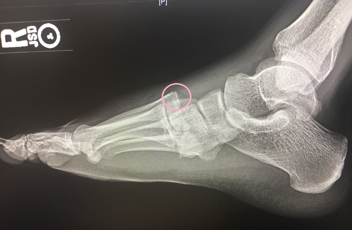 R foot Lisfranc Injury. Lateral Radiograph. Annotated. JETem 2018
