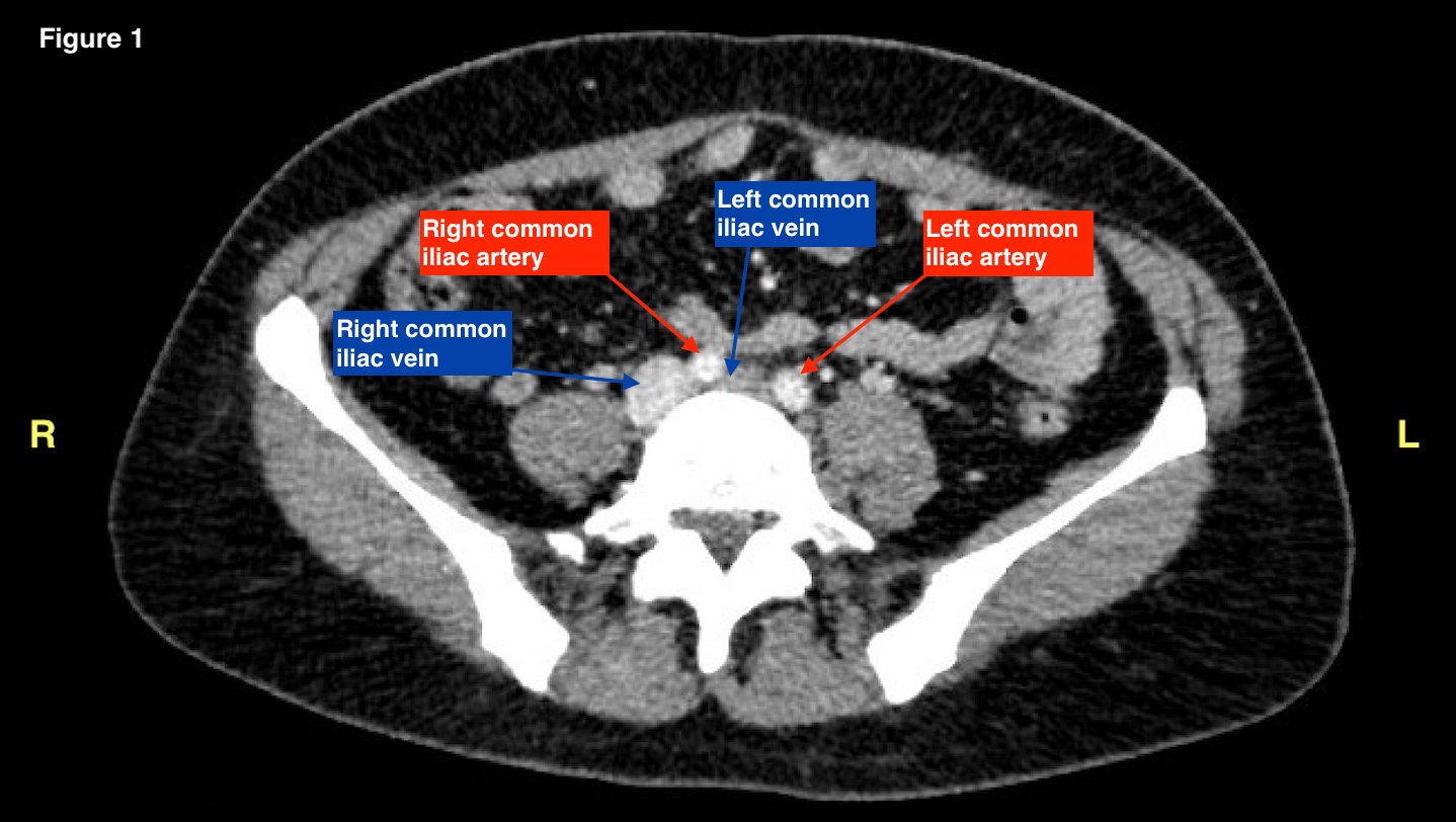 May Thurner. CTA of the pelvis, transverse image, Annotated. JETem 2022