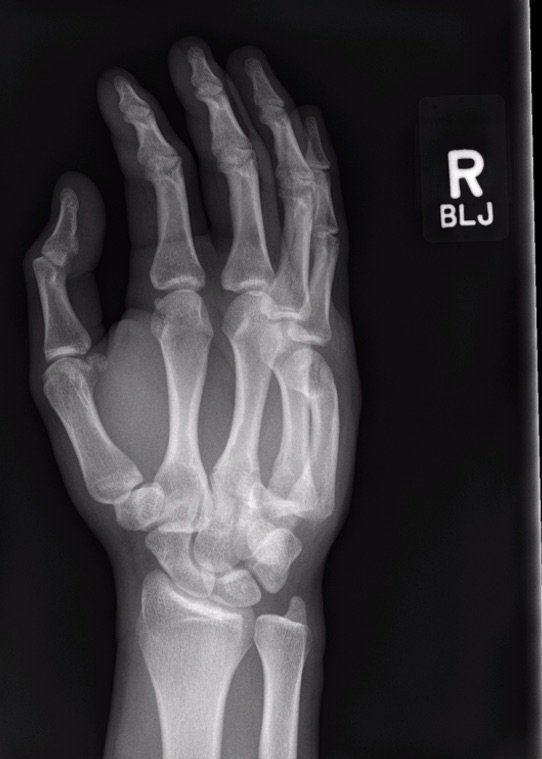 2 R Hand Metacarpal Fracture Dislocation, Prereduction. Radiograph. Unannotated. JETem 2018By JETem / July 15, 2018