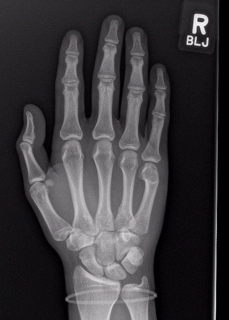 3 R Hand Metacarpal Fracture Dislocation, Post-Reduction. Radiograph. Unannotated. JETem 2018