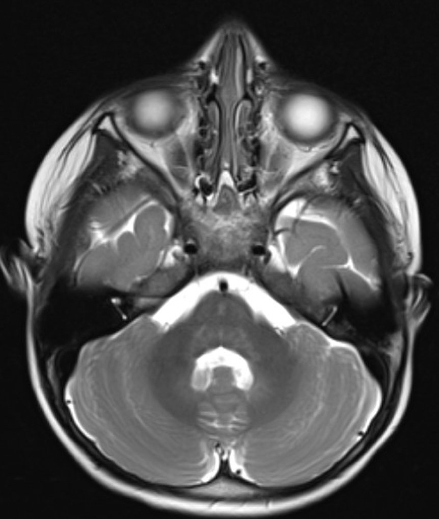 Toddler with Metastatic Neuroblastoma. T2 Axial MRI Clivus Unannotated. JETem 2022By JETem / July 12, 2023