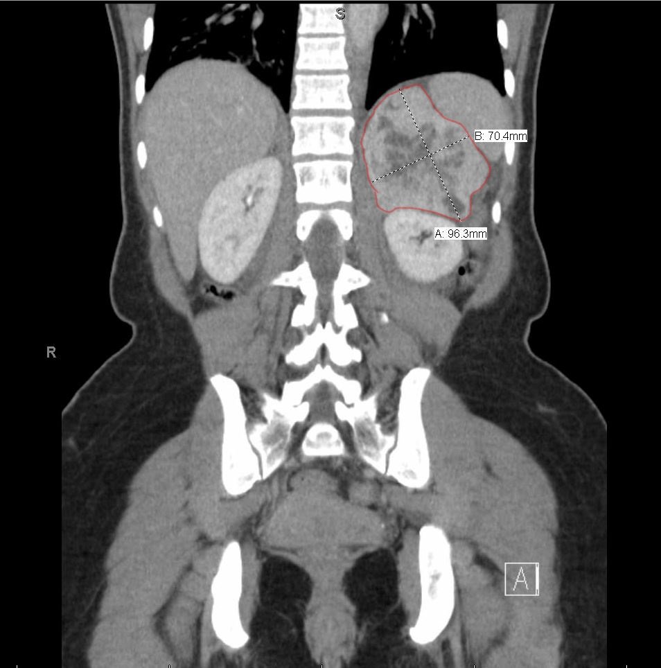 Pheo. CT, Coronal, Annotated. JETem 2019
