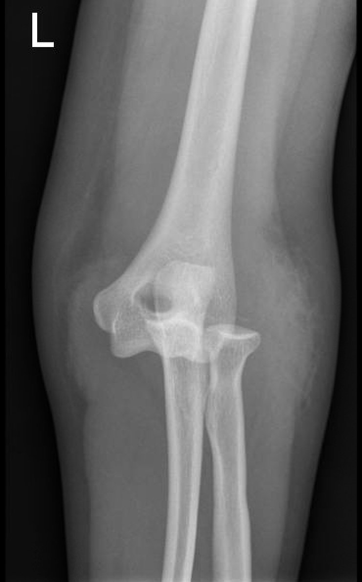 Posterior Elbow Dislocation, AP XRay, dislocated. JETem 2016