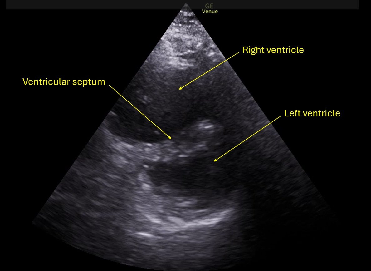 Wolff A, et al. Right atrial thrombosis. Parasternal short US 2, annotatedBy JETem / January 31, 2025 Wolff A, et al. Right atrial thrombosis. Parasternal short US 2, annotated