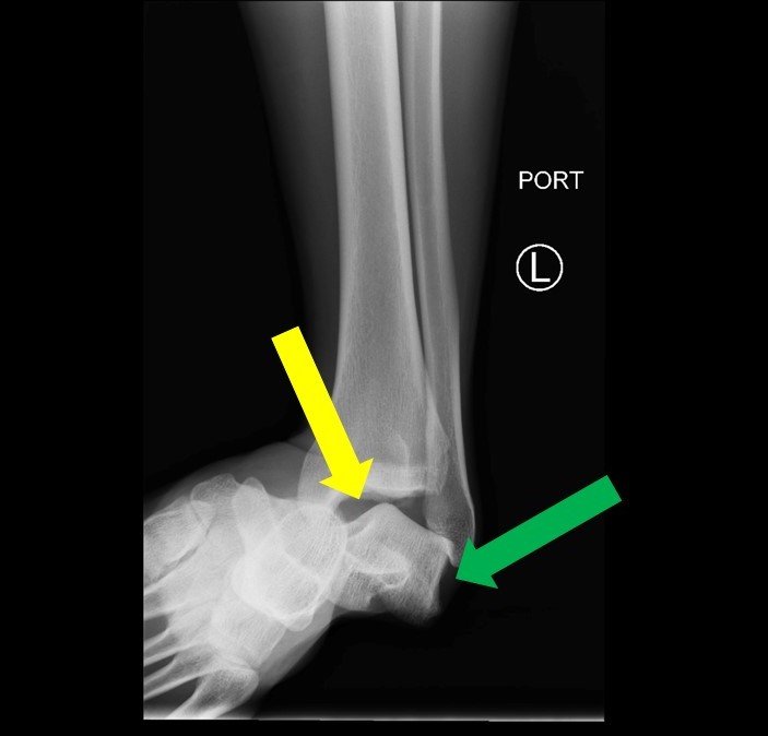 Medial Subtalar Dislocation. Xray Lateral, Annotated. JETem 2019