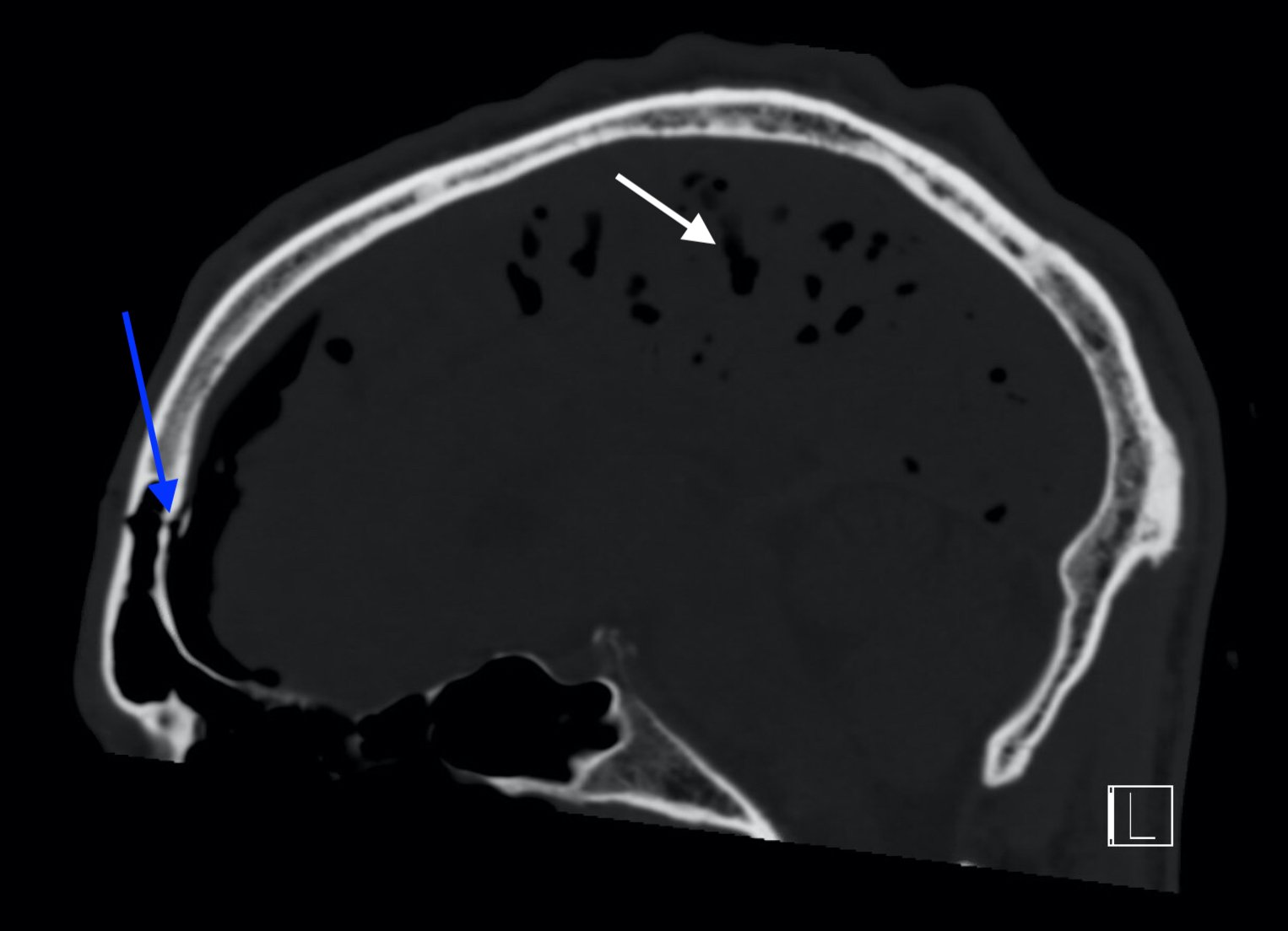Traumatic Tension Pneumocephalus. CT Lateral. Annotated. JETem 2021