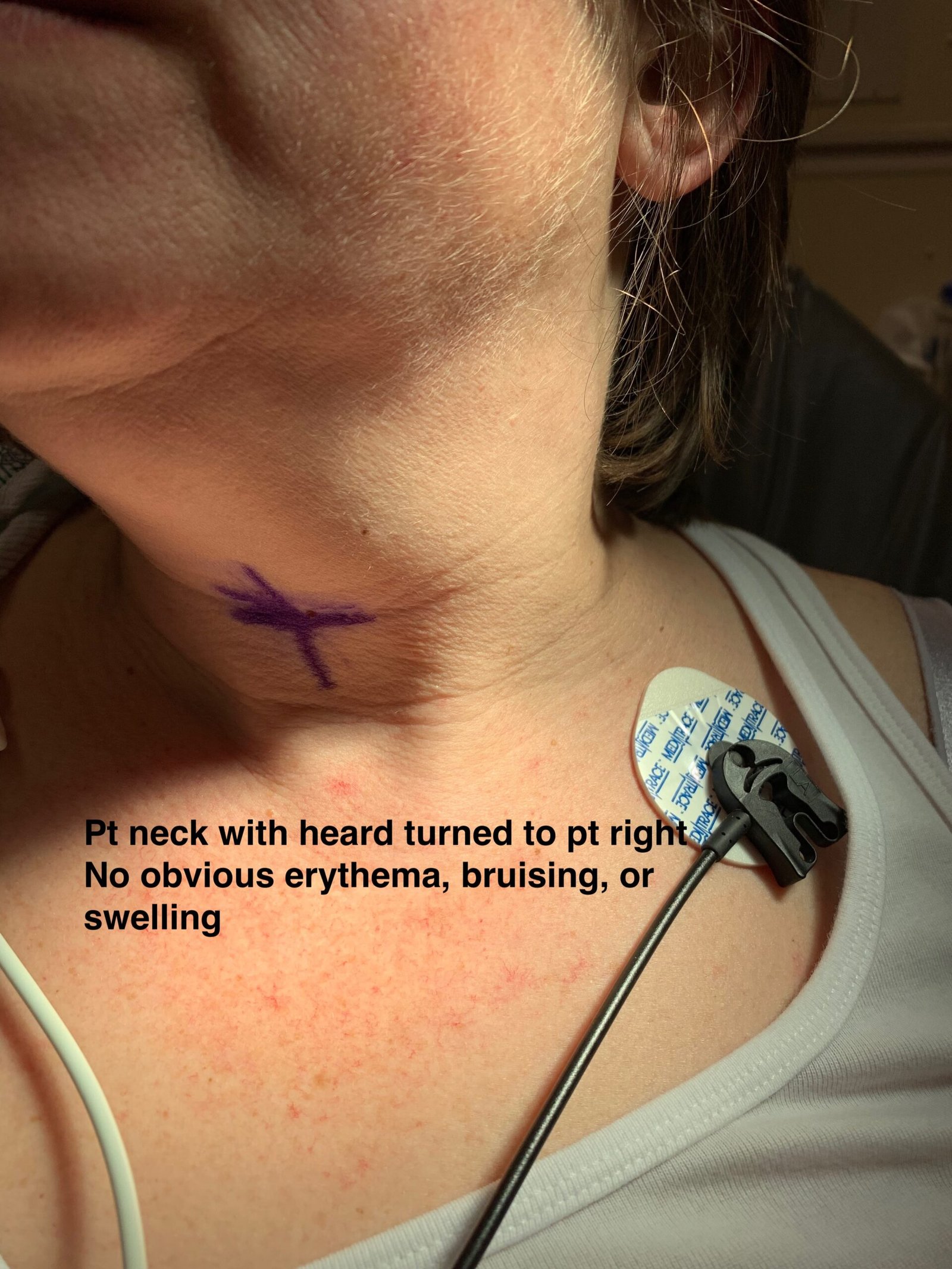 Thyroid Hemorrhage, Neck Photograph Side View, Annotated. JETem 2020